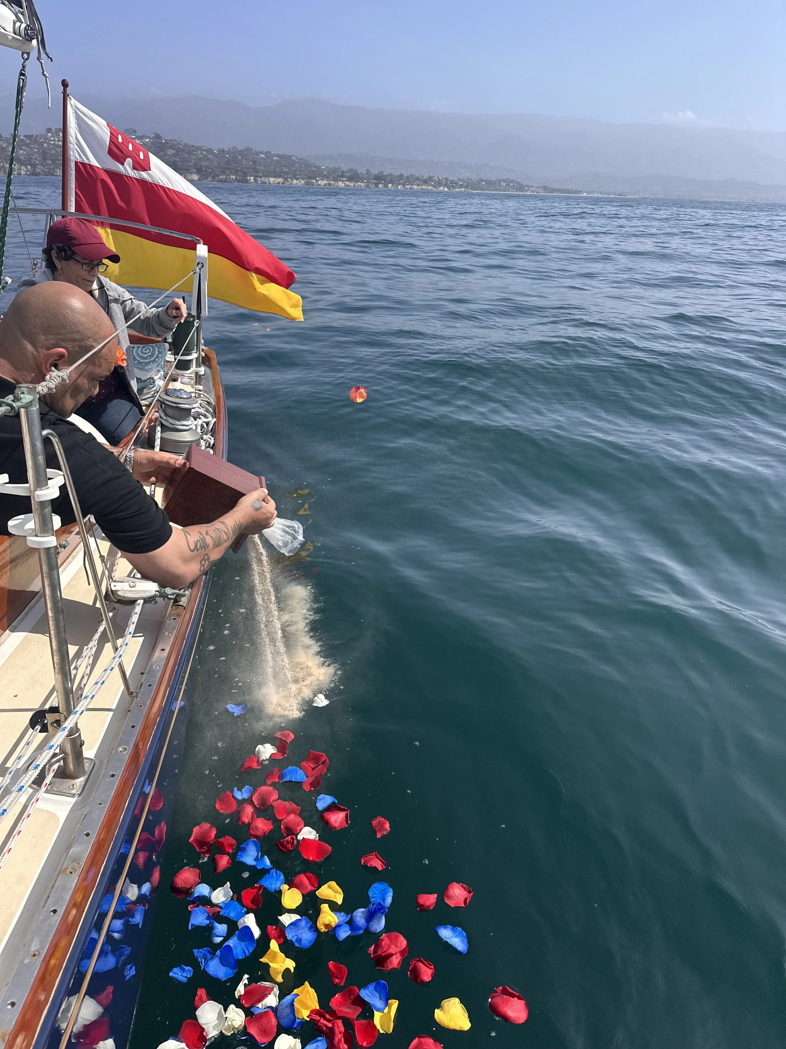 SunSwept Sailing offers a dignified ash scattering service and memorial at sea aboard the classic sailing yacht, Kelpie, the only state licensed sailing yacht in Santa Barbara for ash scatterings.